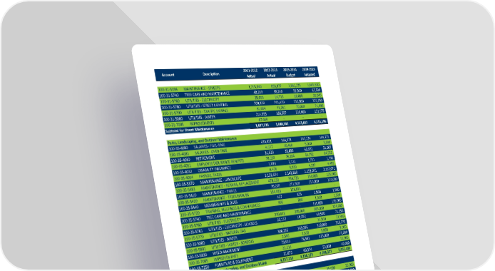 2021‐2022 2022‐2023 2023‐2024 2024‐2025 Account Description Actual Actual Budget Adopted 100‐31‐5394 MAINTENANCE ‐ STREETS 1,215,040 893,877 1,881,275 1,865,830 100‐31‐5740 TREE CARE AND MAINTENANCE 48,299 58,248 92,500 87,500 100‐31‐5760 UTILITIES ‐ ELECTRICITY 28,600 14,715 20,000 20,540 100‐31‐5780 UTILITIES ‐ STREET LIGHTING 709,830 791,430 750,000 770,250 100‐31‐5790 UTILITIES ‐ TRAFFIC SIGNALS 81,694 73,281 70,000 71,890 100‐31‐5800 UTILITIES ‐ WATER 214,595 186,507 225,000 231,075 100‐31‐7005 IMPROVEMENTS 67,689 ‐ ‐ ‐ Subtotal for Street Maintenance 3,437,238 3,040,542 4,513,662 4,516,196 Parks, Landscaping, and Outdoor Maintenance 100‐35‐4000 SALARIES ‐ FULL‐TIME 435,851 366,571 287,174 304,721 100‐35‐4003 SALARIES ‐ OVER‐TIME 4,177 10,468 5,000 5,000 100‐35‐4030 RETIREMENT 31,529 35,685 30,372 32,207 100‐35‐4031 EMPLOYEE INSURANCE BENEFITS 70,194 76,284 64,752 64,932 100‐35‐4032 DISABILITY INSURANCE 1,814 2,121 1,721 1,793 100‐35‐4034 PAYROLL TAXES 6,476 5,539 4,237 4,491 100‐35‐5370 MAINTENANCE ‐ LANDSCAPE 2,122,374 2,142,838 2,252,071 2,137,071 100‐35‐5383 MAINTENANCE ‐ REPAIRS, REPLACEMENT 478,230 356,726 250,000 225,000 100‐35‐5410 MAINTENANCE ‐ TRAILS 70,218 211,920 110,000 110,000 100‐35‐5420 MAINTENANCE ‐ TREES/SHRUBS 154,933 126,893 ‐ ‐ 1,500 1,500 100‐35‐5440 MEMBERSHIPS & DUES 417 375 100‐35‐5720 TRAINING, MEETINGS & CONFERENCES 990 880 1,500 1,500 100‐35‐5740 TREE CARE AND MAINTENANCE ‐ ‐ 135,000 135,000 100‐35‐5760 UTILITIES ‐ ELECTRICITY 330,612 385,958 365,000 374,000 100‐35‐5761 UTILITIES ‐ ELECTRICITY ‐ SCHOOLS 23,137 19,352 69,500 71,350 100‐35‐5770 UTILITIES ‐ NATURAL GAS ‐ ‐ 32,500 32,500 100‐35‐5800 UTILITIES ‐ WATER 306,296 249,296 310,000 318,370 100‐35‐5801 UTILITIES ‐ WATER ‐ SCHOOLS 2,560 2,318 3,000 3,000 100‐35‐5830 WEED ABATEMENT 73,553 76,581 125,000 75,000 100‐35‐7005 IMPROVEMENTS 22,210 ‐ ‐ 15,000 100‐35‐7250 FURNITURE & EQUIPMENT 21,672 60,374 50,000 40,000 Subtotal for Parks, Landscaping, and Outdoor Maint 4,157,243 4,130,179 4,098,327 3,952,435 Environmental Services 100‐37‐5145 EROSION CONTROL ‐ 24,166 35,000 20,000 100‐37‐5250 MITIGATION MONITORING 217,197 104,410 295,000 150,000 100‐37‐5330 MAINTENANCE ‐ DAMAGE & REPAIR 114,506 ‐ ‐ ‐ 100‐37‐5430 MAINTENANCE ‐ WETLANDS 118,002 117,372 150,000 180,000 100‐37‐5540 PUBLIC EDUCATION 1,000 1,000 15,000 5,000 100‐37‐5680 STORM DRAIN VIDEO INSPECTIONS 466 133,440 210,000 195,000 100‐37‐5825 WATER QUALITY TESTING 65,770 43,947 75,000 95,000 L 3,380 7,989 14,000 18,000 100‐37‐6340 INTEGRATED REGIONAL WATER MGMT P 100‐37‐6600 NATIONAL POLLUTION ELIMINATION SYST 201,275 222,377 275,000 291,000 100‐37‐6725 PROFESSIONAL SERVICES‐OTHER 249,248 247,430 390,000 405,000 Subtotal for Environmental Services 970,844 902,131 1,459,000 1,359,000 67